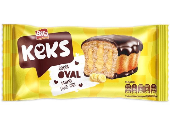 Keks Oval 45g jemné pečivo s banánovou náplňou polomáčané v kakaovej poleve